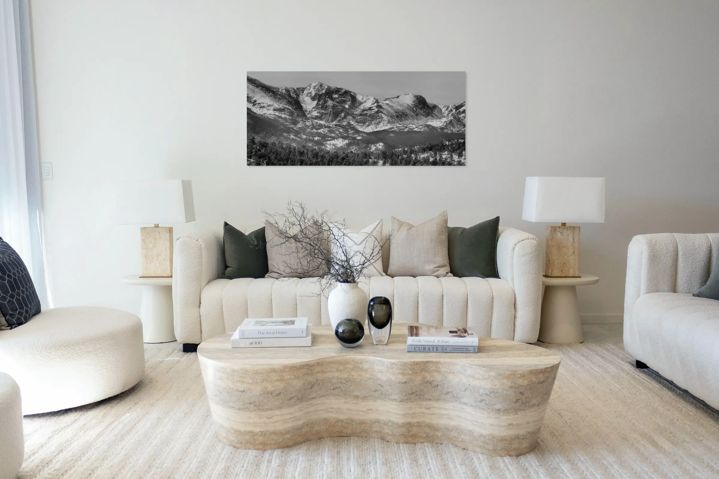 Scenic panorama view of the snow covered Mummy Range Ypsilon Mountain elevation 13520 ft and Fairchild Mountain elevation 13508 ft. The mountain is northwest of Estes Park in Rocky Mountain National Park. Colorado Fine art nature landscape photography poster prints decorative canvas prints acrylic prints metal prints corporate artwork greeting cards and stock images by James Bo Insogna C - All Rights Reserved. Please feel Free to share our links with Family or Friends who may also enjoy them. If you like my Art Gallery please spread the word and press the Pinterest FB Google+ Twitter or SU Buttons! Thank you! *PLEASE NOTE WATERMARKS WILL NOT BE ON THE PURCHASE PRINTS*