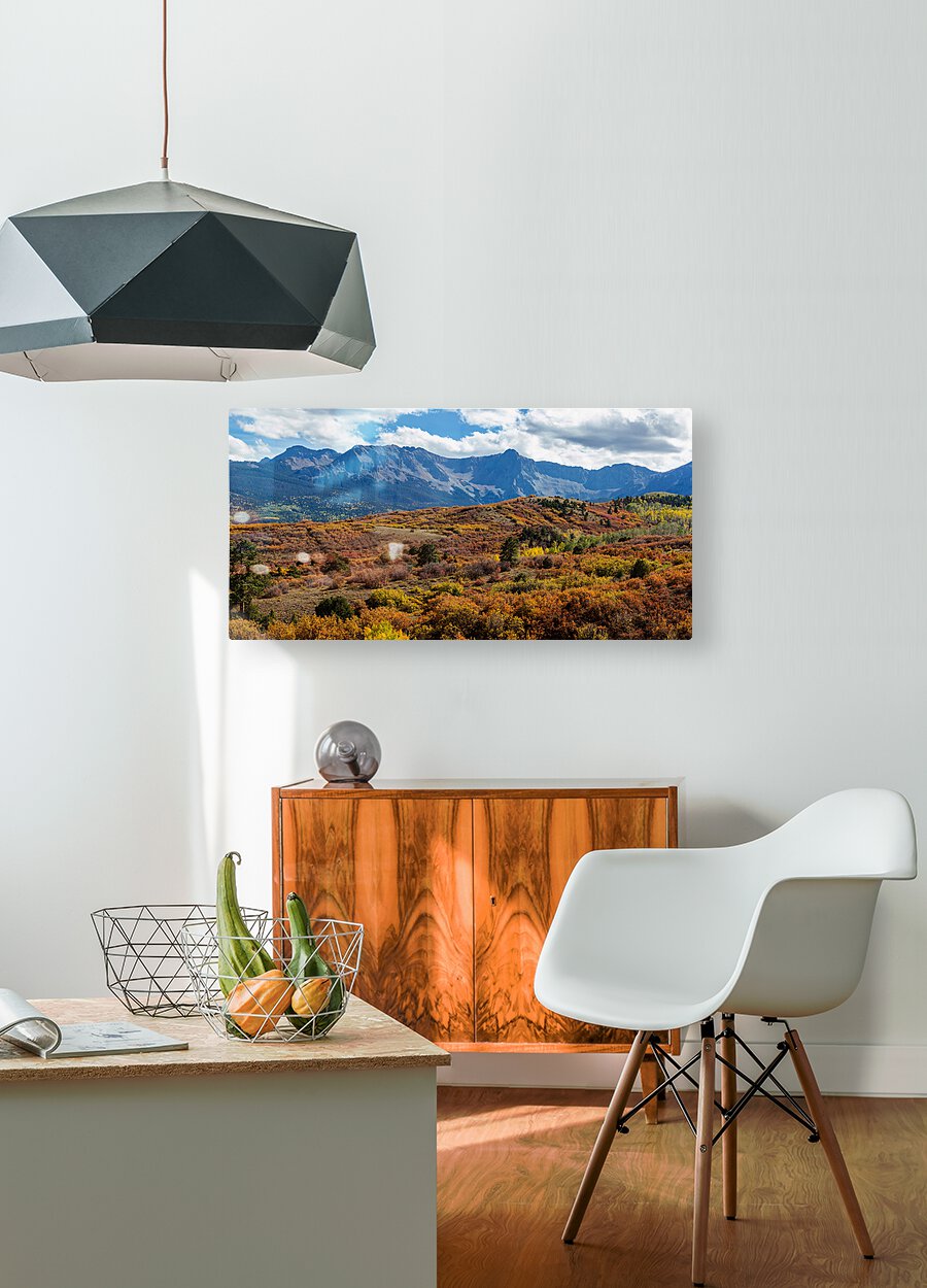 Very large panoramic view of the autumn season changing colors in the southwest Colorado Rocky Mountains west of Ridgeway. This is part one of a very large two part print that is available as large as 18 feet wide by 3 feet tall with both images. Each image will print up to 9 feet by 3 feet. Fine art nature landscape photography prints and image licensing by James Bo Insogna. For more please like subscribe follow and share. Very much appreciated! All artwork and images in this gallery are the original artwork of James Bo Insogna Copyright All Rights Reserved and is protected by US and International Copyright laws