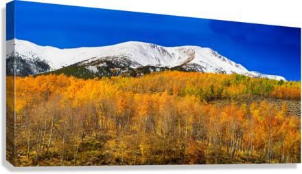 Colorado Rocky Mountain Autumn Independence Pass Panorama. Second part of this two part series making for a larger panorama. The time of year that mother nature shows her colors a beautiful scenic landscape view of the snowcapped Colorado Rocky Mountains in full autumn golden colorful fall foliage. Rocky Mountains Independence Pass autumn scenic landscape early October view. Independence Pass is a high mountain pass in the Rocky Mountains of central Colorado in the United States. It is at elevation 12095 ft 3687 m on the Continental Divide in the Sawatch Range. The pass is midway between Aspen and Twin Lakes on the border between Pitkin and Lake counties. State Highway 82 traverses it in the process reaching the highest elevation of a paved Colorado state highway on a through road. After Cottonwood Pass to the south it is the second-highest pass with an improved road in the state the fourth-highest paved road in the state and the highest paved crossing of the Continental Divide in the U.S. Because of the heavy snowfall at its elevation it is closed in wintertime isolating Aspen from direct access from the east during the ski season. Colorado Fine art nature landscape photography poster prints decorative canvas prints acrylic prints metal prints corporate artwork greeting cards and stock images by James Bo Insogna C - All Rights Reserved. *PLEASE NOTE WATERMARKS WILL NOT BE ON THE PURCHASE PRINTS