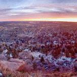 The morning magic hour this is a large 9 image wide panorama scenicat a colorful dawn of the City of Boulder Colorado and beyond. Boulder is at an ele...[+]