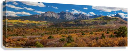 Very large panoramic view of the autumn season changing colors in the southwest Colorado Rocky Mountains west of Ridgeway. This is part one of a ver...[+]
