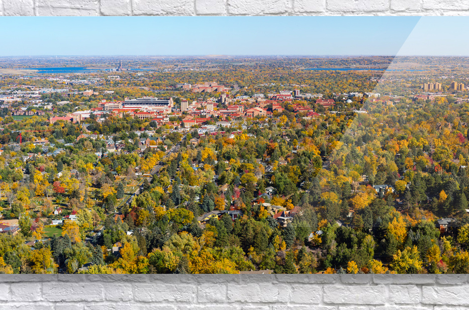 Beautiful fall panoramic view from Flagstaff Mountain of Colorado University in Boulder.