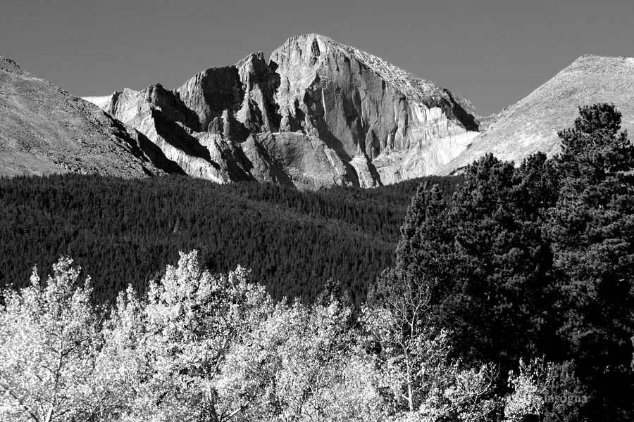 LONGS PEAK AUTUMN ASPEN LANDSCAPE VIEW BW