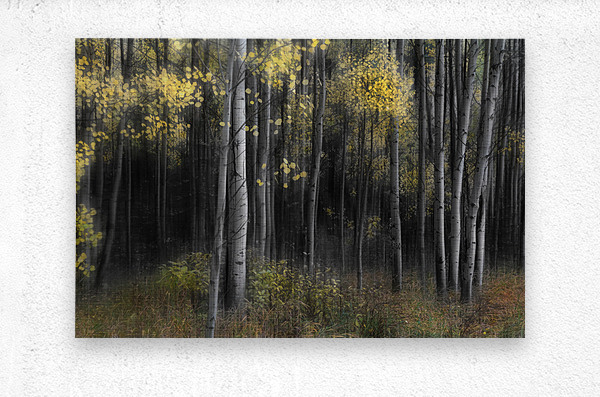 Get this artwork "Aspen Tree Grove Into Darkness" in a framed print.