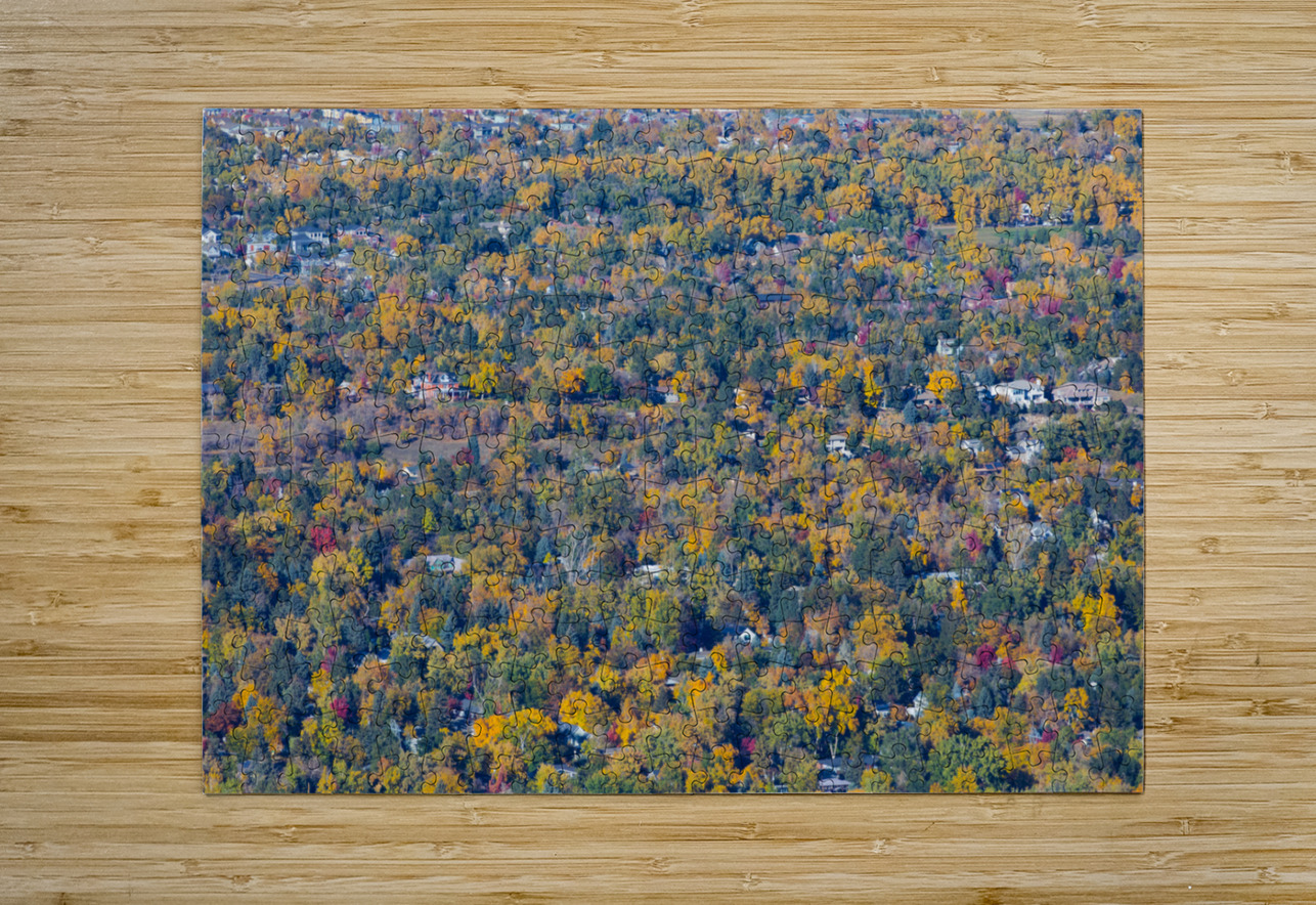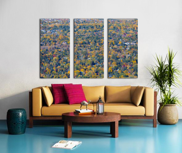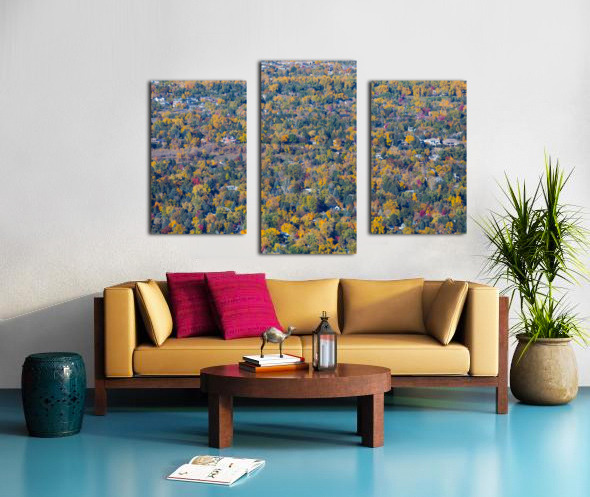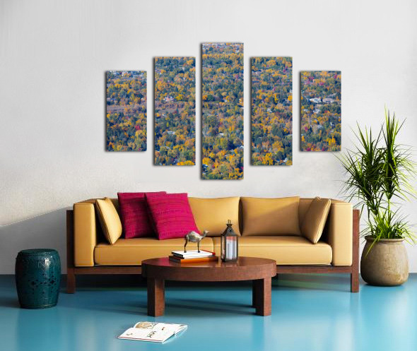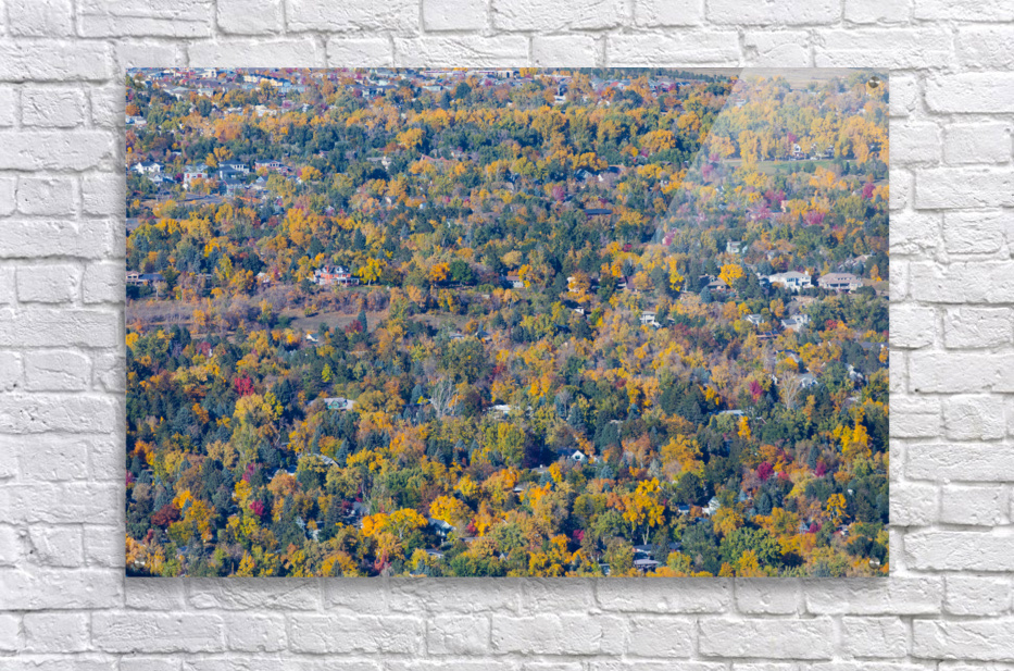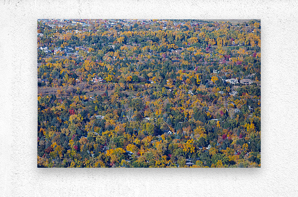 Here is a view from above of the Colorful fall foliage of Boulder Colorado.