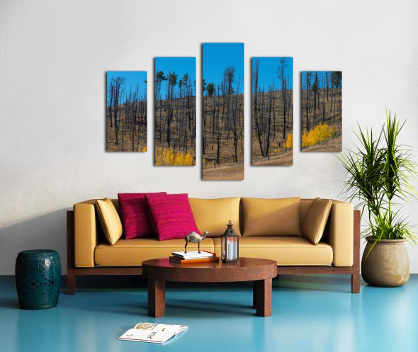 A group of colorful Aspen trees at the base of the old CalWood wildfire burn out area. Evolution of a forest slowly coming back.