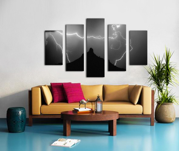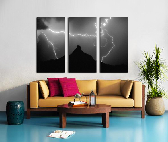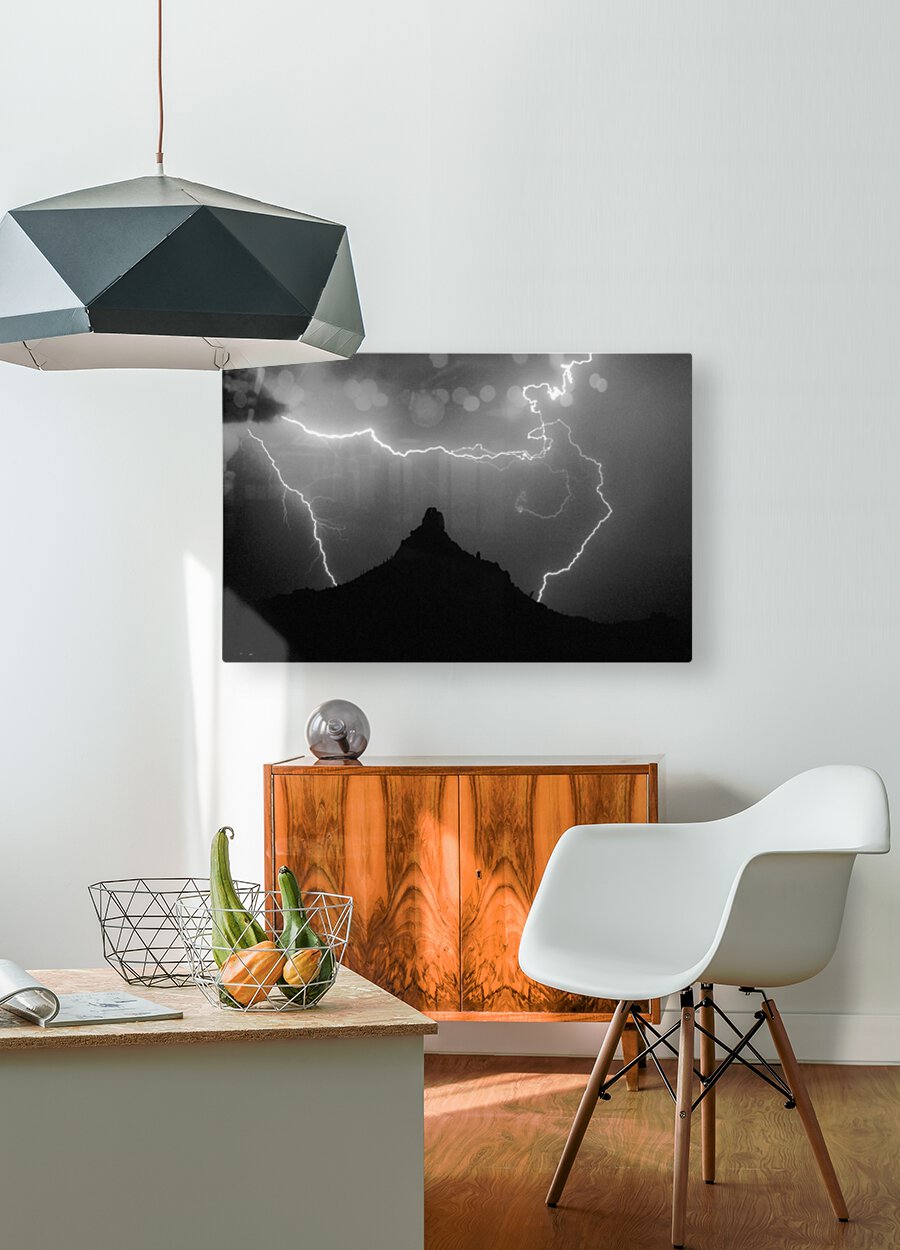 ABOUT THIS ARTWORK: PINNACLE PEAK SURROUNDED BY LIGHTNING BOLTS