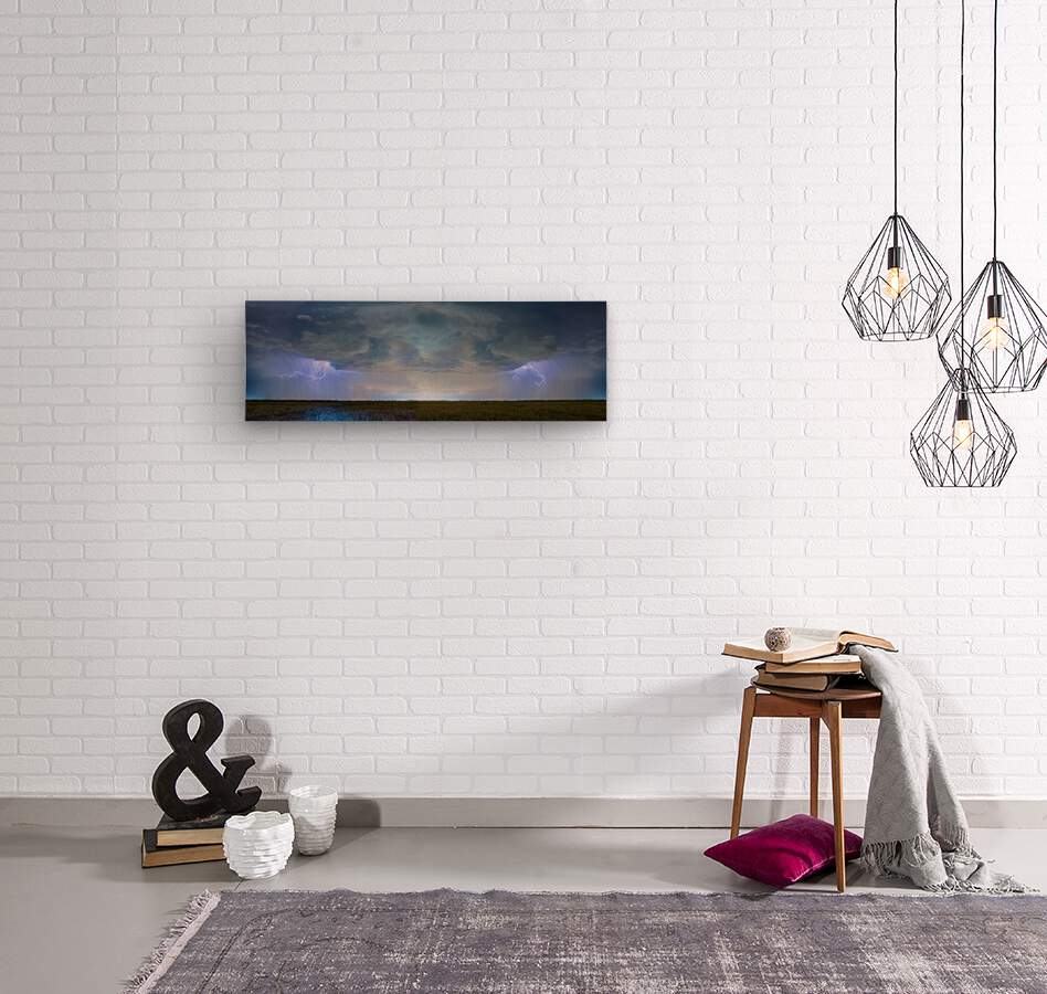 Country Wheat Field Storm Panorama  Wood print