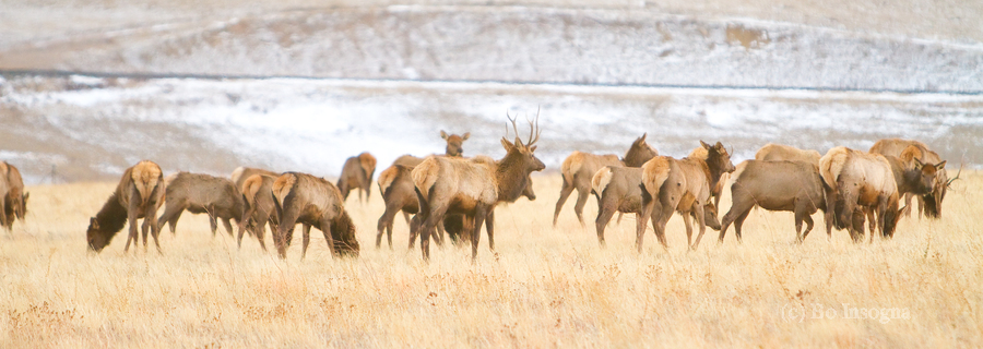 A panorama scenic landscape view with a heard of elk grazing on the grasses of the plains leading up to the foothills of the Colorado Rocky Mountains west of Denver. Number two in this series. Colorado fine art wildlife photography poster prints decorative canvas prints acrylic prints metal prints corporate artwork greeting cards and stock images by James Bo Insogna C - All Rights Reserved. Please feel Free to share our links with Family or Friends who may also enjoy them. If you like my Art Gallery please spread the word and press the Pinterest FB Google+ Twitter or SU Buttons! Thank you! *PLEASE NOTE WATERMARKS WILL NOT BE ON THE PURCHASE PRINTS*
