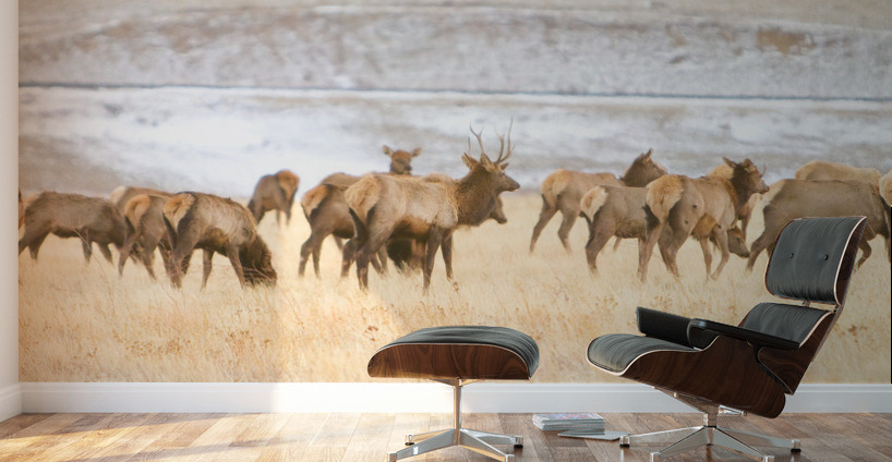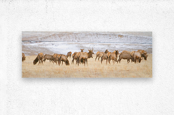Elk Heard On The Rocky Mountain Foothills    Wood print