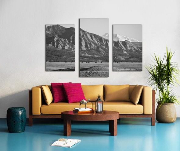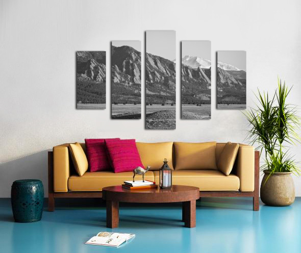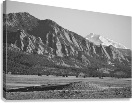 Colorado Rocky Mountains Flatirons Snow Covered Longs Peak BW Canvas print