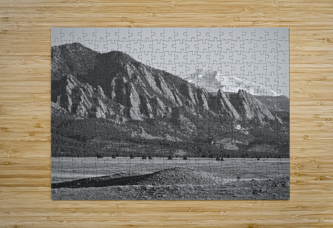 Colorado Rocky Mountains Flatirons Snow Covered Longs Peak BW Bo Insogna Puzzle printing