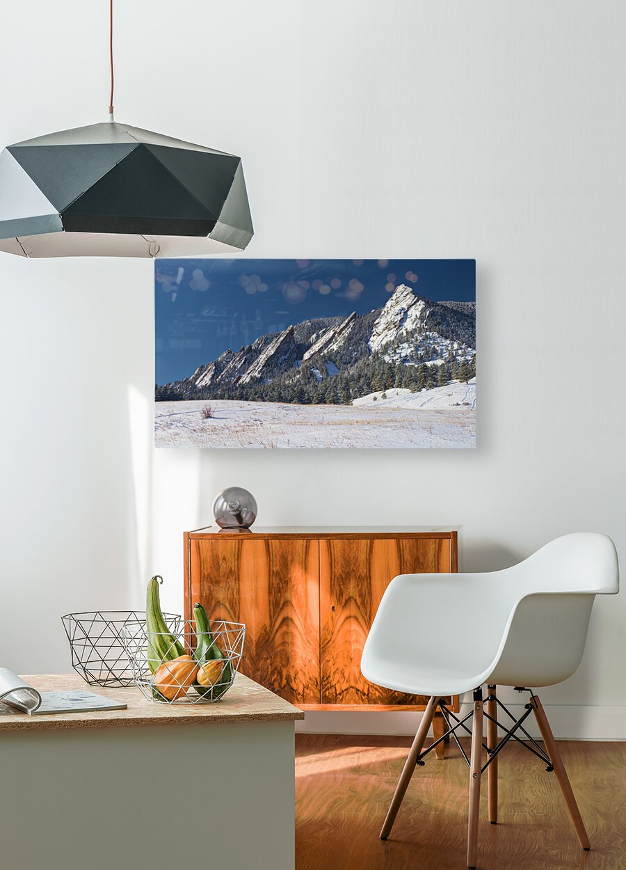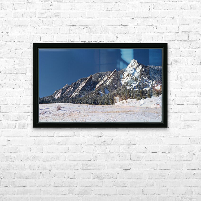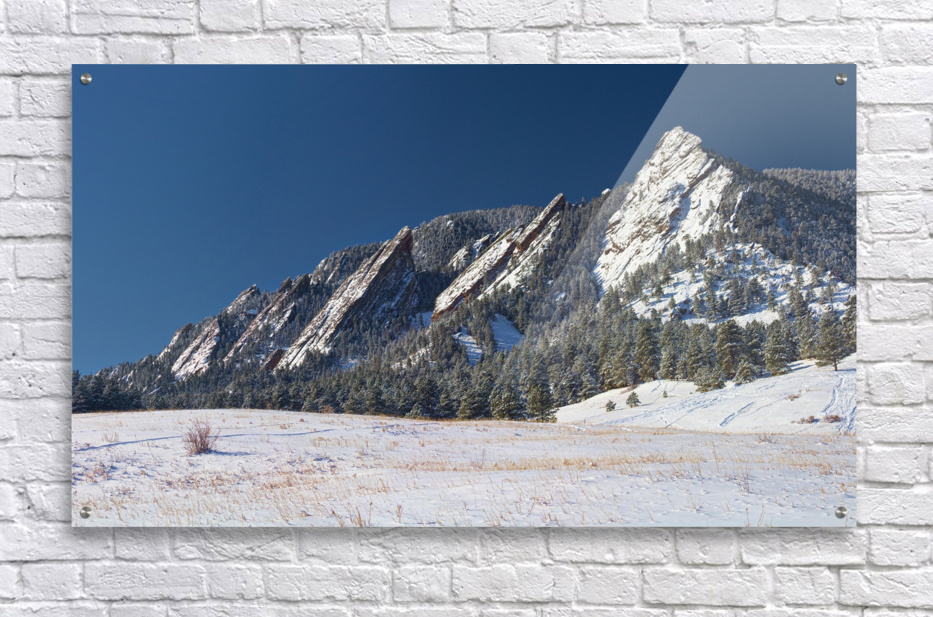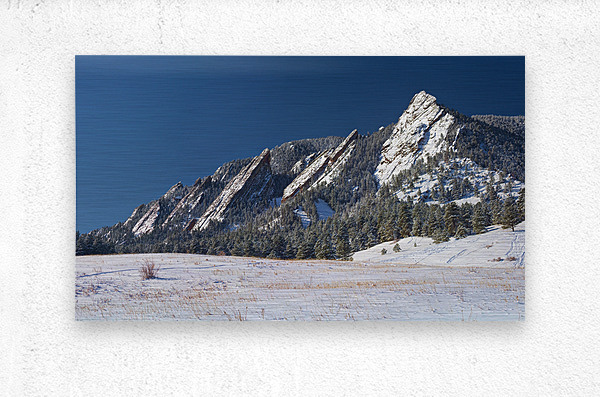 Get this artwork "Flatiron Snow Dusted Boulder CO Panoramic " in a framed print.