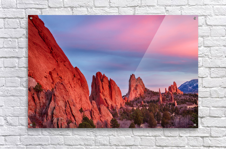 Garden of the Gods with a beautiful colorful sunset sky. *PLEASE NOTE WATERMARKS WILL NOT BE ON THE PURCHASE PRINTS* Garden of the Gods is a public park located in Colorado Springs, Colorado. The park is known for its stunning red sandstone rock formations and is a popular destination for outdoor enthusiasts. One of the main attractions at Garden of the Gods is the natural rock formations. The park features towering red rock spires, balanced rocks, and towering cliffs that provide a unique and breathtaking backdrop for outdoor activities. Visitors can hike or bike on the park's many trails, which offer spectacular views of the rocks and the surrounding mountains. The park is also home to several educational and interactive exhibits, including the Garden of the Gods Visitor & Nature Center. The center offers information and exhibits on the geology, history, and ecology of the area, as well as guided tours and educational programs for visitors of all ages. In addition to hiking and biking, the park offers several other activities for visitors to enjoy. The park has a road that winds through the formations, allowing visitors to drive through the park and see the rocks from a different perspective. Visitors can also take a horse-drawn carriage tour of the park, or take part in rock climbing and rappelling experiences. Overall, Garden of the Gods is a must-see destination for visitors to Colorado Springs. The natural beauty of the red rocks, combined with the variety of outdoor activities and educational opportunities, make it a unique and unforgettable experience. Whether you're a nature lover, a history buff, or just looking for a fun day out with the family, Garden of the Gods has something for everyone.