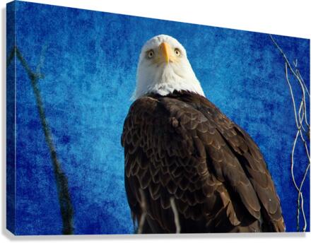 American Bald Eagle on a blue textured background. Composite image. June 28 2007 - The Department of Interior took the American bald eagle off the endangered species list. The removal of the bald eagle from the Federal List of Endangered and Threatened Wildlife and Plants will become effective 30 days after publication in the Federal Register. The bald eagle Haliaeetus leucocephalus is a member of the sea and fish eagle group. Both male and female adult bald eagles have a blackish-brown back and breast a white head neck and tail and yellow feet and bill. Colorado fine art nature wildlife photography images by James Bo Insogna C - All Rights Reserved. Please feel Free to share our links with Family or Friends who may also enjoy them. If you like my Art Gallery please spread the word and press the Pinterest FB Google+ Twitter or SU Buttons! Thank you! *PLEASE NOTE WATERMARKS WILL NOT BE ON THE PURCHASE PRINTS*