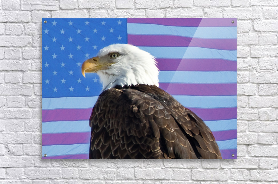 American Bald Eagle head shot with an American USA red white and blue flag background. Bald eagles, native to North America, are large birds of prey with a wingspan of about 7 feet (2 meters). They are second in size only to the California condor and are similar in size to the golden eagle. Adults weigh between 8-14 pounds (3.6-6.4 kg), with females being larger and heavier. They hunt cooperatively, with one scaring prey while the other grabs it with sharp talons. Colorado fine art nature wildlife photography images by James Bo Insogna C - All Rights Reserved. Please feel Free to share our links with Family or Friends who may also enjoy them. *PLEASE NOTE WATERMARKS WILL NOT BE ON THE PURCHASE PRINTS* If you like my Art Gallery please spread the word and press the Pinterest FB Google+ Twitter or SU Buttons! Thank you! *PLEASE NOTE WATERMARKS WILL NOT BE ON THE PURCHASE PRINTS*