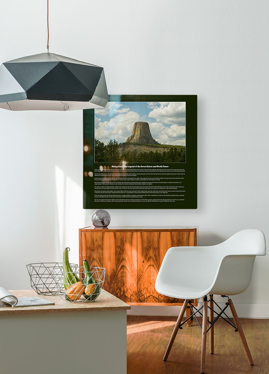 Get this artwork "Rising Stars: The Legend of the Seven Sisters and Devils Tower" in a framed print.