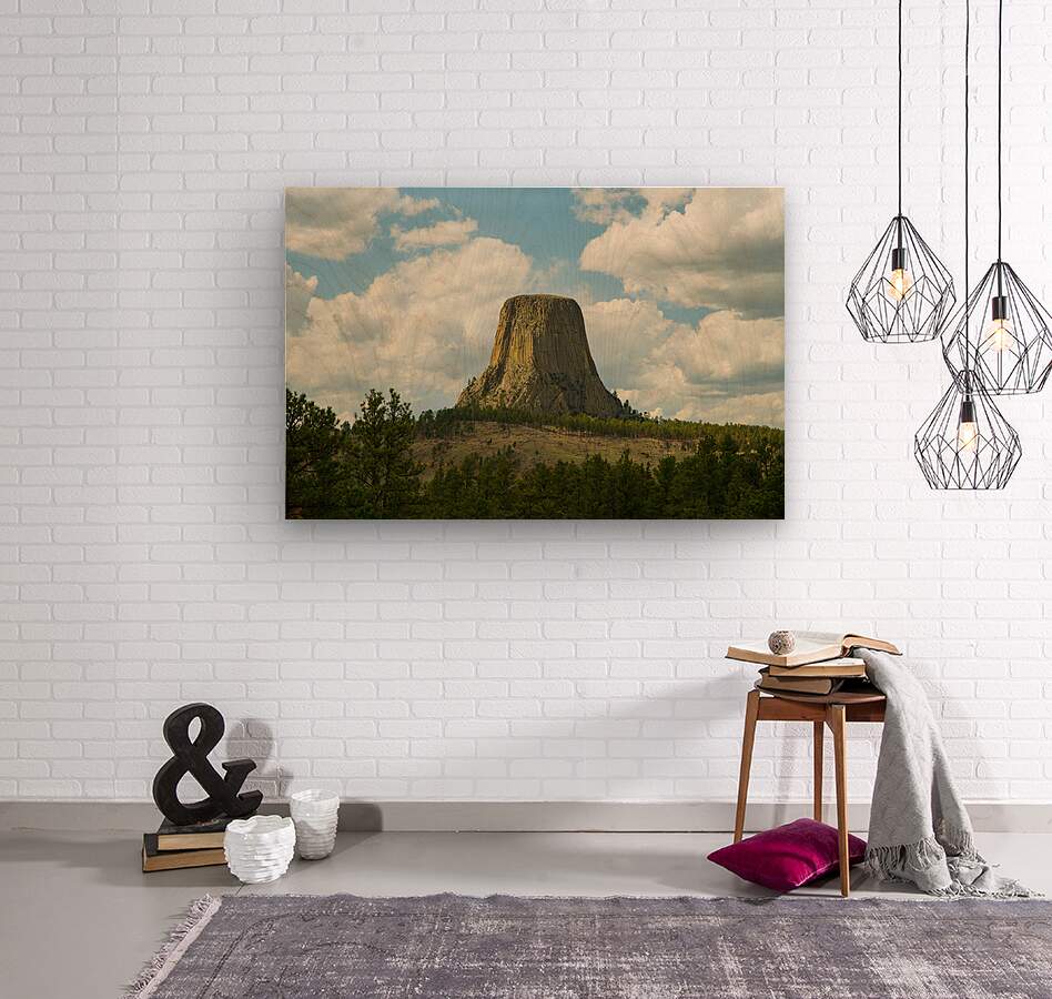 ABOUT THIS ARTWORK: MAJESTIC DEVILS TOWER IN WYOMING AMIDST PINE FOREST