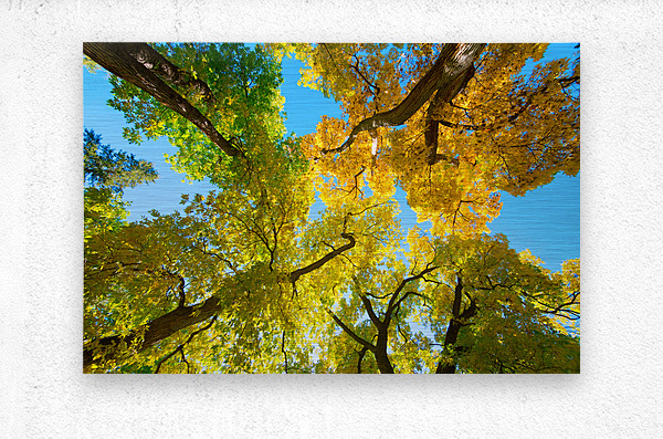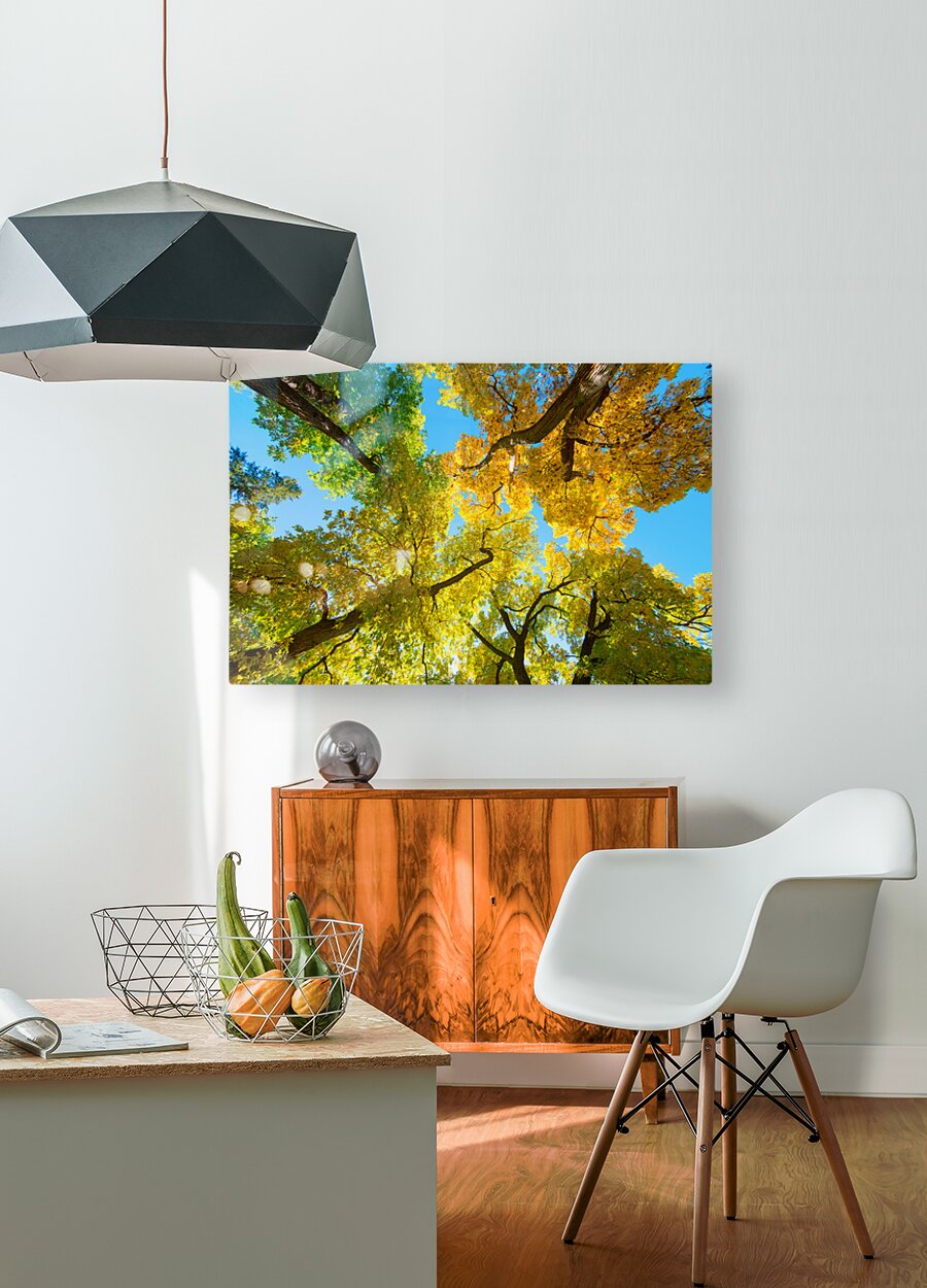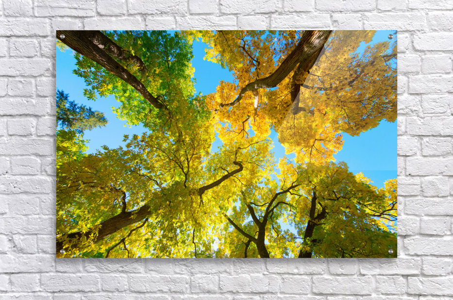 ABOUT THIS ARTWORK: VIBRANT AUTUMN LANDSCAPE - COLORFUL TREES UNDER BLUE SKY