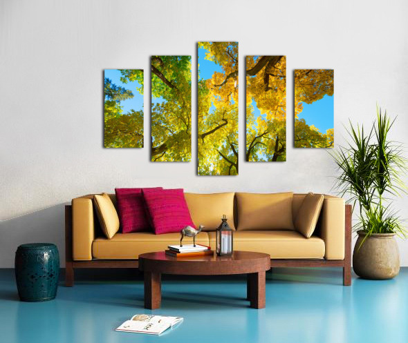 Vibrant Autumn Landscape - Colorful Trees under Blue Sky Canvas print