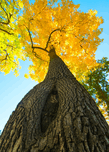 GOLDEN AUTUMN TREE - MAJESTIC TRUNK AND LEAVES IN FALL SPLENDOR