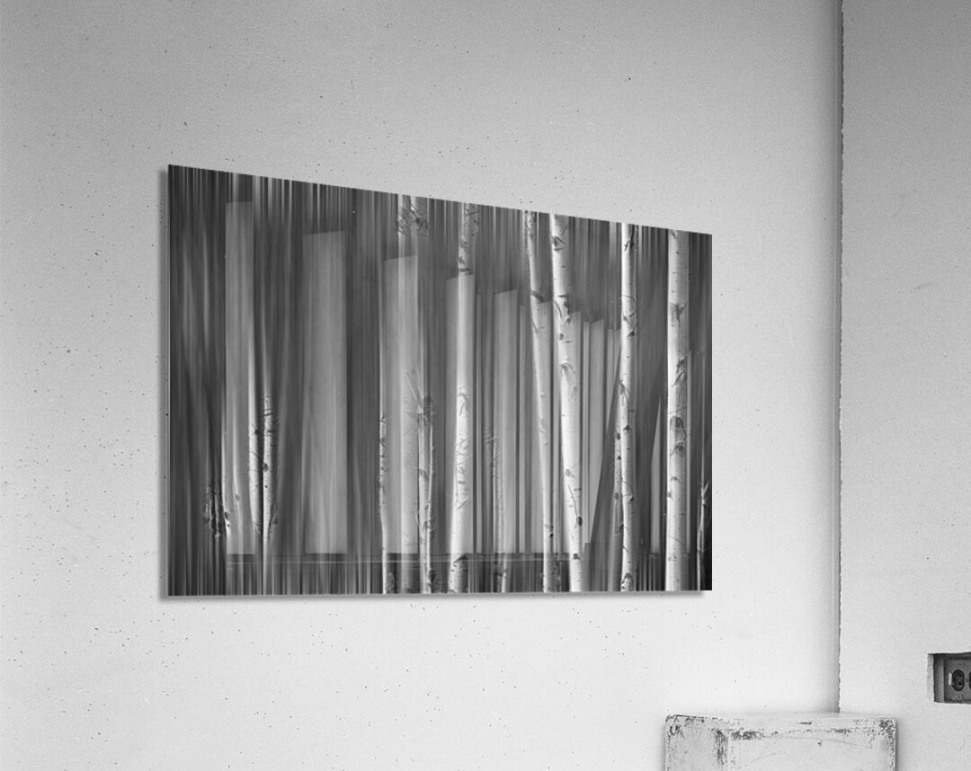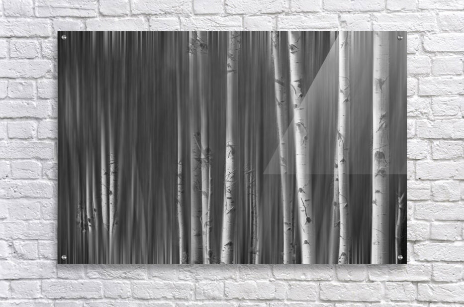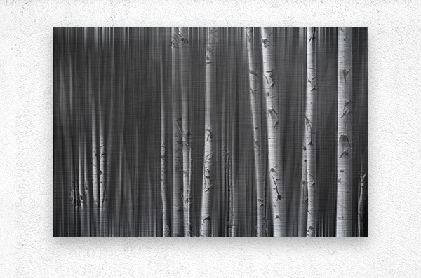 Dreamy black and white surreal abstract of aspen tree forest in the Colorado Rocky Mountains . Colorado fine art nature landscape photography poste...[+]