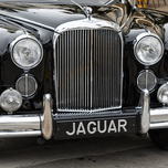 FRONT END OF A CLASSIC OLD BLACK JAGUAR
