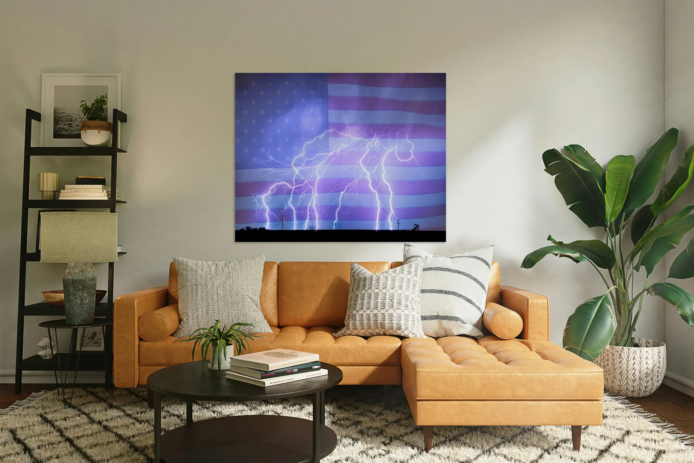 American Oil Field lightning striking the Colorado Dacona oil fields. Massive lightning bolts striking next to a oil well pump jack. This is a composite image with USA American flag background. Patriotic fine art photography images by James Bo Insogna C - All Rights Reserved. Please feel Free to share our links with Family or Friends who may also enjoy them. If you like my Art Gallery please spread the word and press the Pinterest FB Google+ Twitter or SU Buttons! Thank you! *PLEASE NOTE WATERMARKS WILL NOT BE ON THE PURCHASE PRINTS*