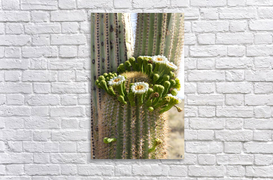 In the month of May the giant saguaro cactus bloom in the Arizona desert. Fine art nature landscape photography prints canvas art acrylic prints and s...[+]