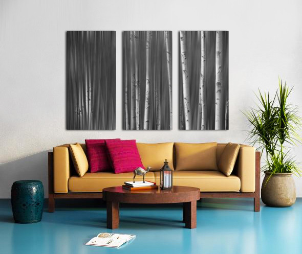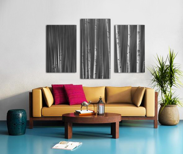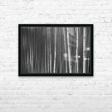 Dreamy black and white surreal abstract of aspen tree forest in the Colorado Rocky Mountains . Colorado fine art nature landscape photography poste...[+]