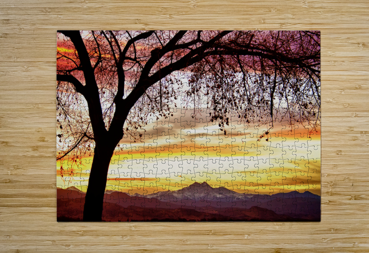 Colorado Sunset with Twin Peaks and Tree Silhouette Bo Insogna Puzzle