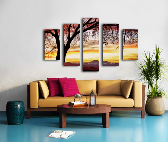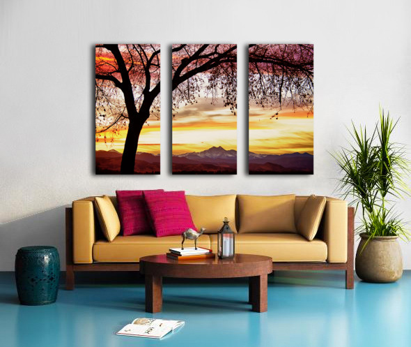 Colorado Sunset with Twin Peaks and Tree Silhouette Impression sur toile