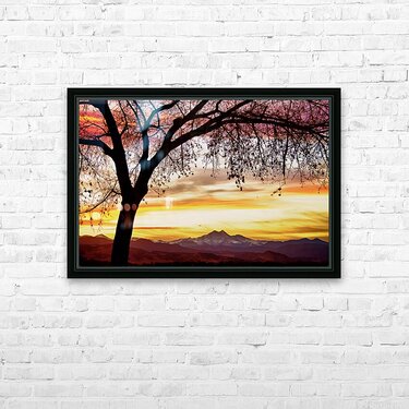 A breathtaking fine art photography print capturing a vivid sunset sky over the Colorado Front Range. Framed by the silhouette of a large tree the sce...[+]