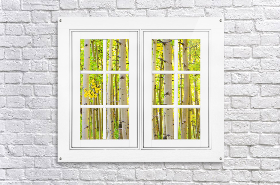 Aspen Forest White Picture Window Frame View  Impression sur bois