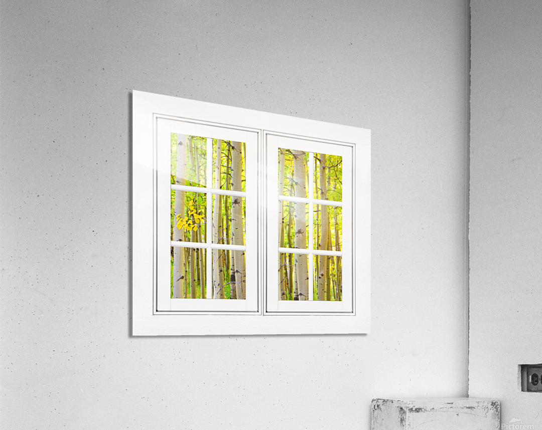 Aspen Forest White Picture Window Frame View Impression sur bois
