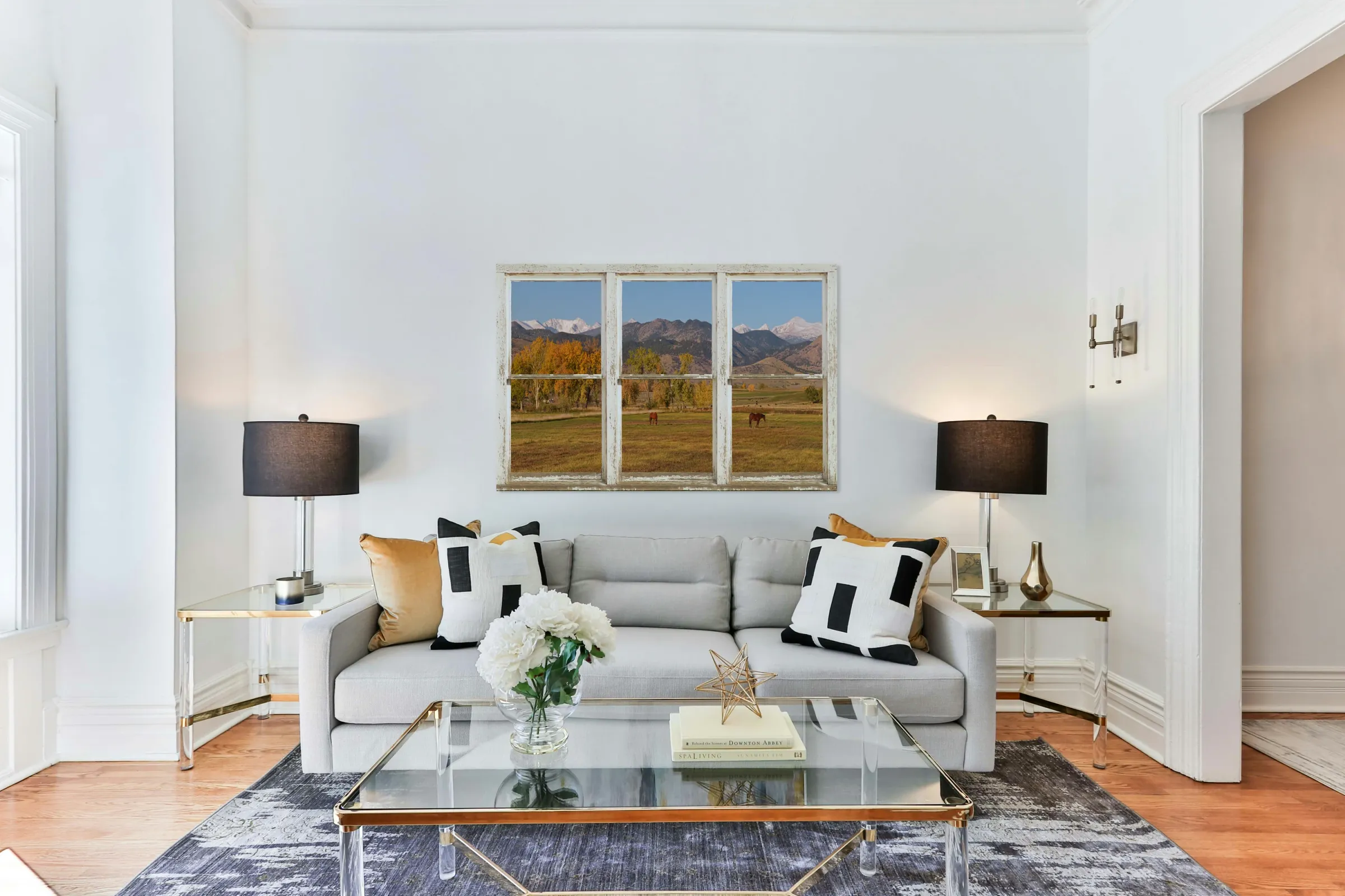 HORSES AUTUMN WHITE BARN PICTURE WINDOW VIEW
