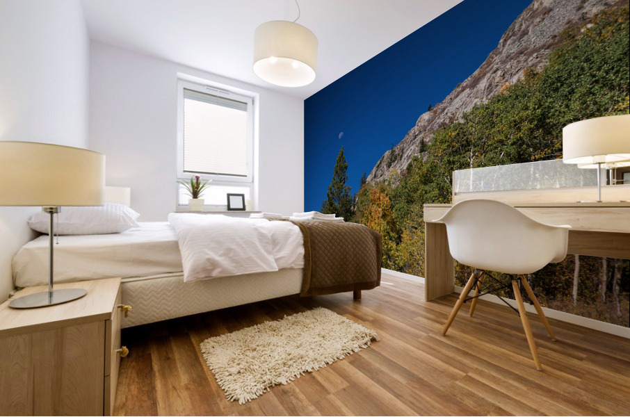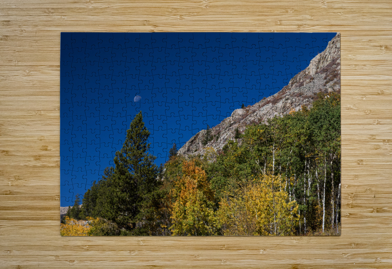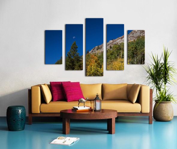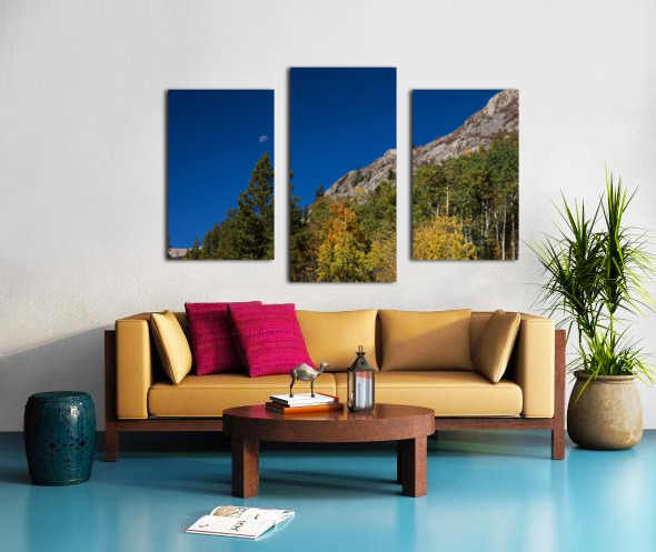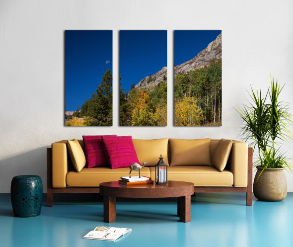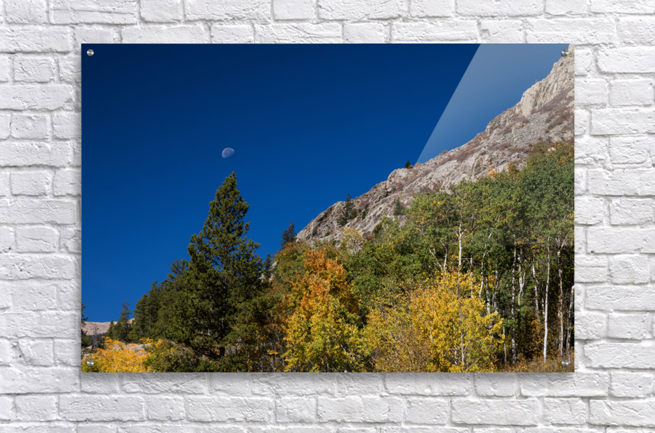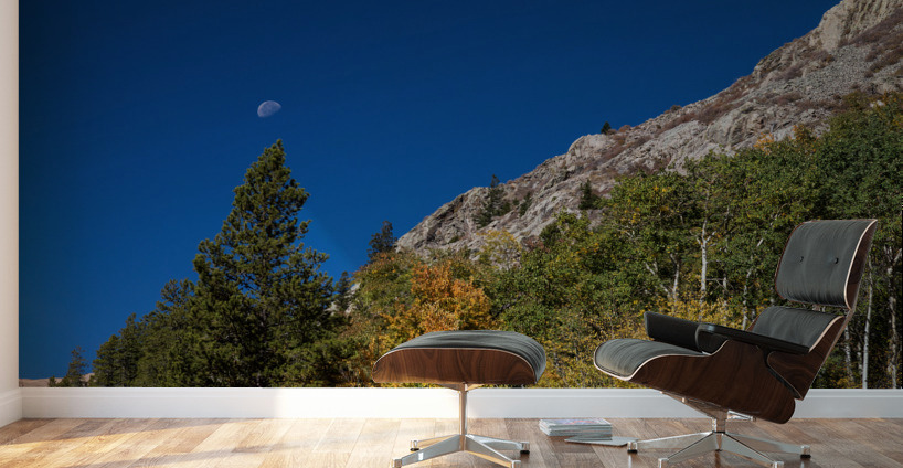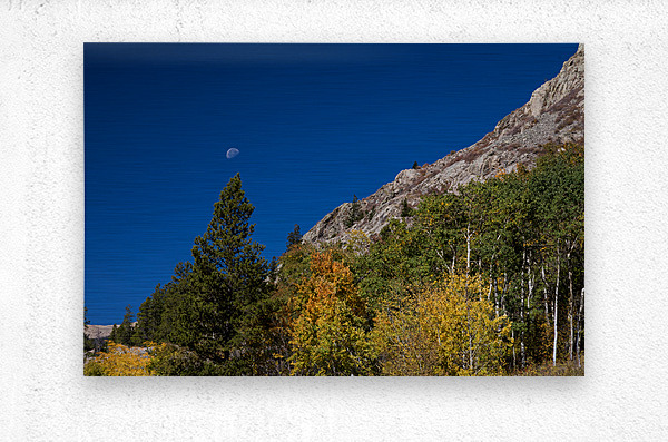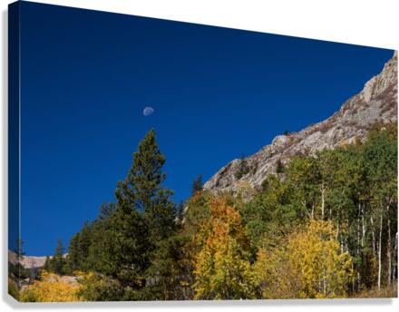 Beautiful waning gibbous moon setting in clear blue skies in the Colorado colorful autumn foliage season. Fine art nature landscape photography prints...[+]