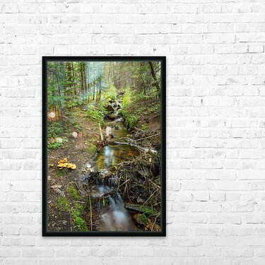 Pour obtenir "Wild Mushrooms Along Creek" dans une impression encadrée.