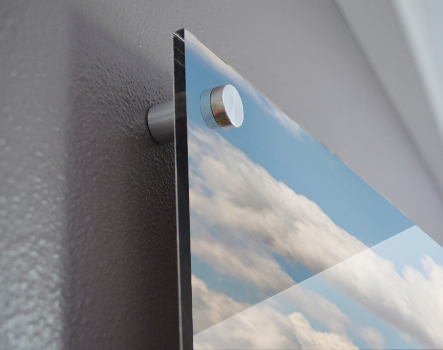 Impression sur acrylique avec entretoises ( cylindres métalliques )