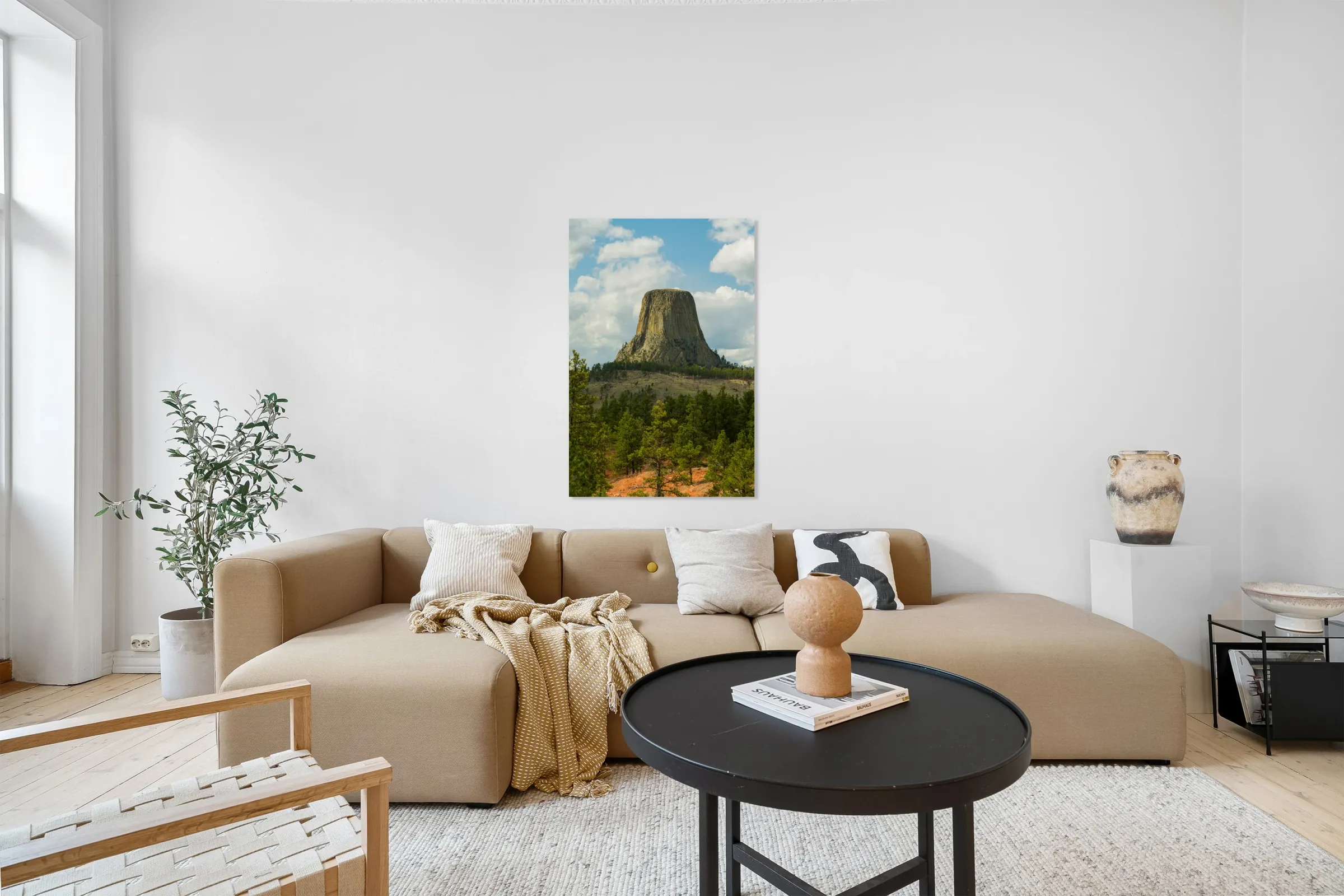 Majestic Devils Tower in Wyoming Surrounded by Pine Forest Impression du cadre