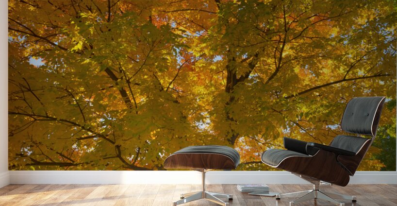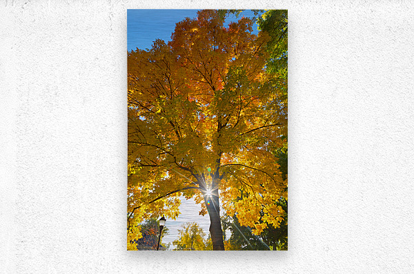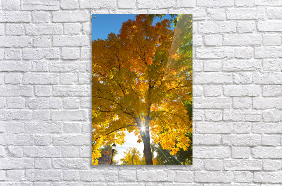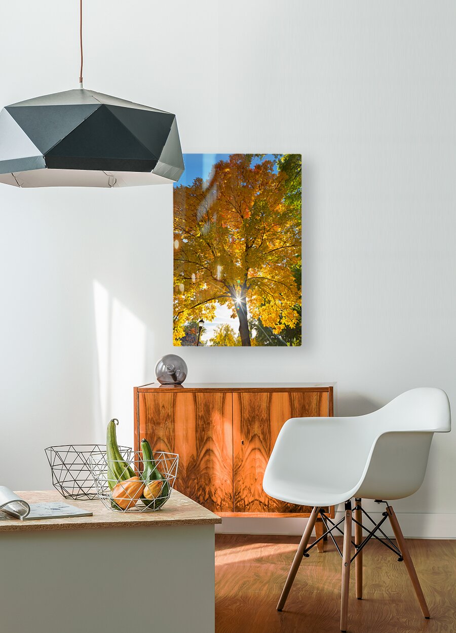 SUR CETTE OEUVRE: STUNNING AUTUMN TREE SUNLIGHT THROUGH COLORFUL LEAVES